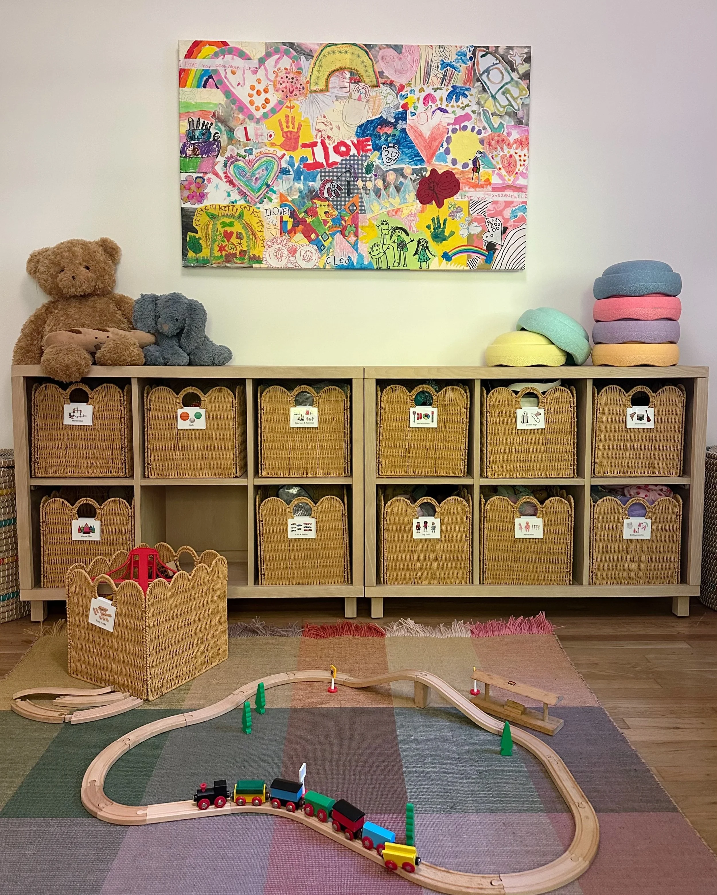 Holiday Replenish: It’s always a DREAM for us when a client times a project with the holidays because our toy recommendations can double as Hannukah/Christmas presents! (This also means all the new toys in the space are Little Kingdoms approved 😉). After a purge, we are able to identify gaps in a family’s play categories and suggest toys accordingly. The types of play we wanted to bolster most (aside from art) were gross motor, dramatic play, building and loose parts.