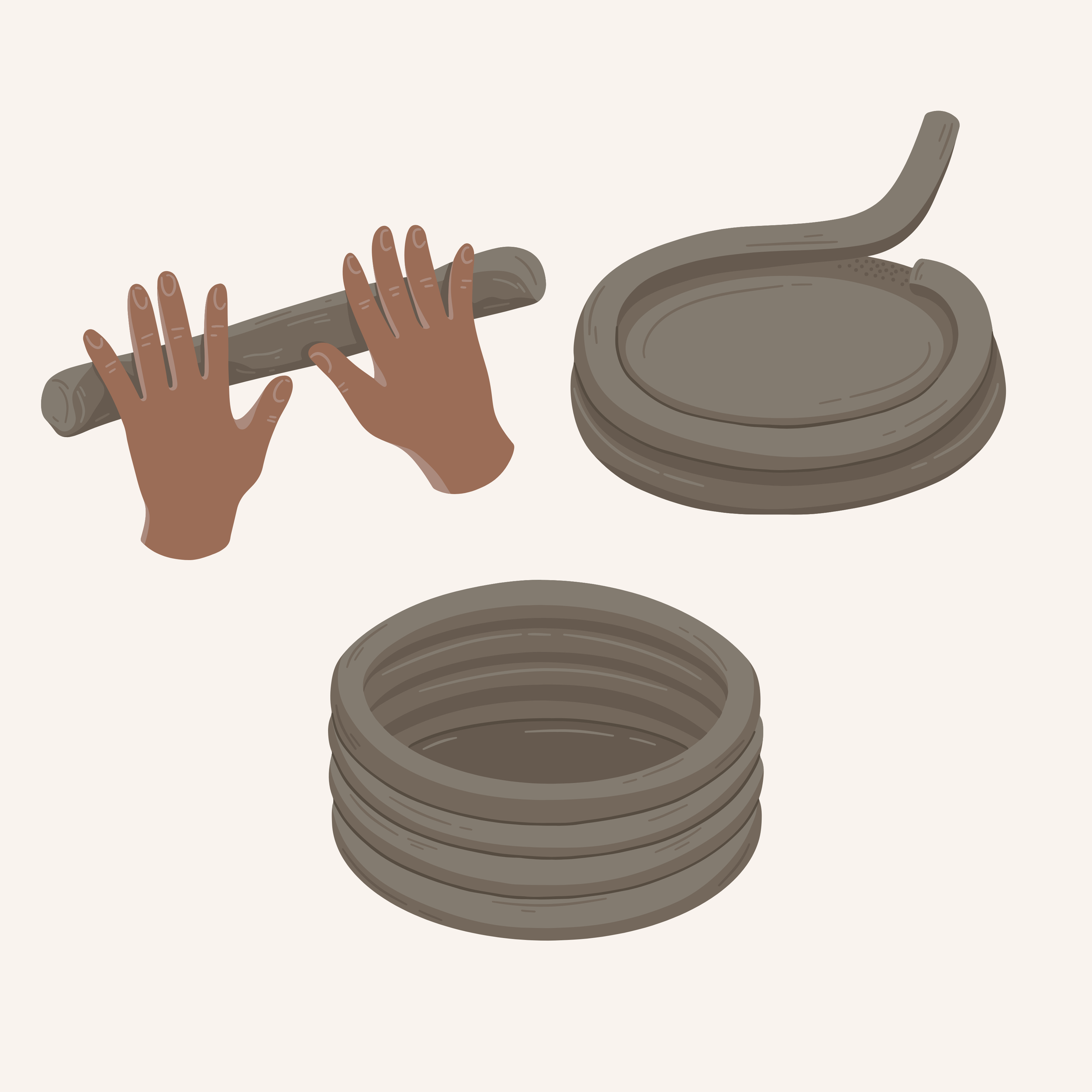 3) Once you have a coiled based, begin rolling the same piece upward so it creates a wall along the circumference of your base.