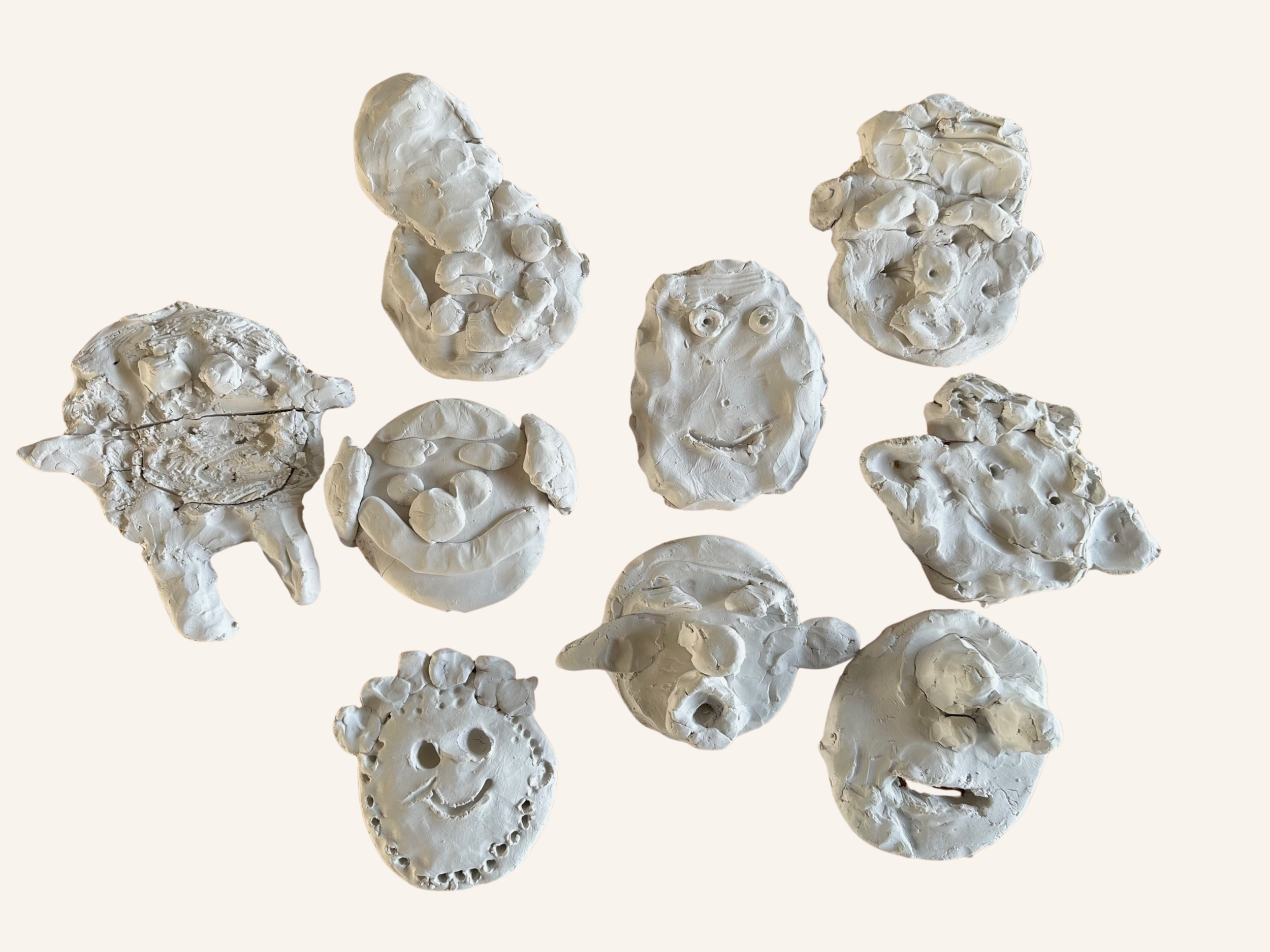 After our brainstorm we got to work sculpting with the assistance of mirrors. Children studied their features and used the feedback to guide their work. We’ve been practicing with clay tools, so the kiddos were familiar with what each one could be used for. Some children etched in their eyes, nose, and mouth while others sculpted them and added them onto their face. We’re excited about the outcomes :) We’ll let these dry along with other projects and paint them in the coming weeks!